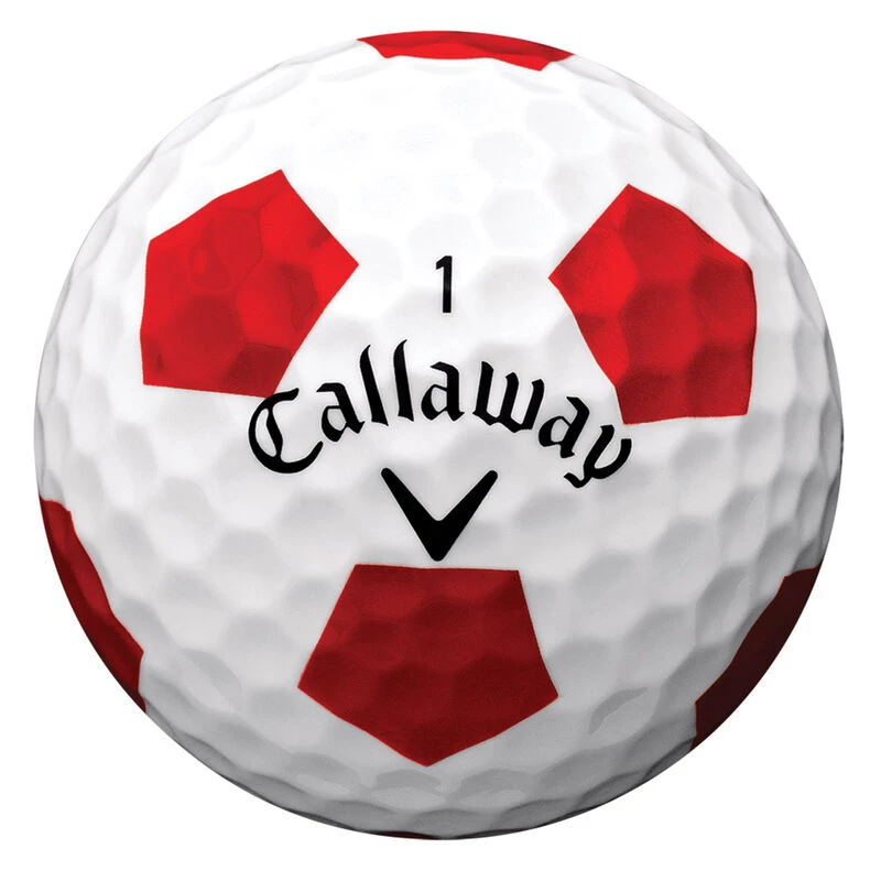 Callaway Truvis Balls White with a pinch of football Red! Chrome Soft Golf Balls. New and improved in the new Truvis packaging! The Callaway Chrome Soft Golf Ball combines Tour-proven softest distance bite, grab and best spin performance with unparalleled feel and good mis-hit forgiveness, Callaway calls it a Dual SoftFast Core. Chrome Soft Truvis 2022/23 Golf Ball delivers tour-proven performance unlike any other. Featuring the innovative new Precision Technology because it gives tighter dispersion, but improved distance and the signature Chrome Soft feel.