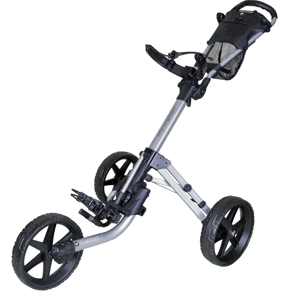 Fastfold Mission 5 Green Silver Trolley. Superb robust super durable solidity and great looks. New. Brilliant buy if you can afford a little luxury that goes toe to toe with everything that the clicgear has to offer. Yet a slice off that price with solid engineering and watertight warranty.